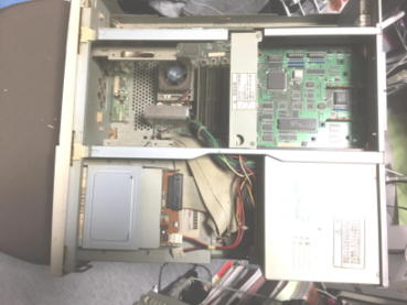 外は傷だらけでひどい物です。前 面カバー1枚取れてるし。 中はこんな感じw 拡張RS-232CとSCSIカードも入っ てました! HDDは、3.2GBでメモリー、 32MB、FDDもヘッドをアルコール で拭いてR/WはOK。 なんとWindows95も入ってて起動 |